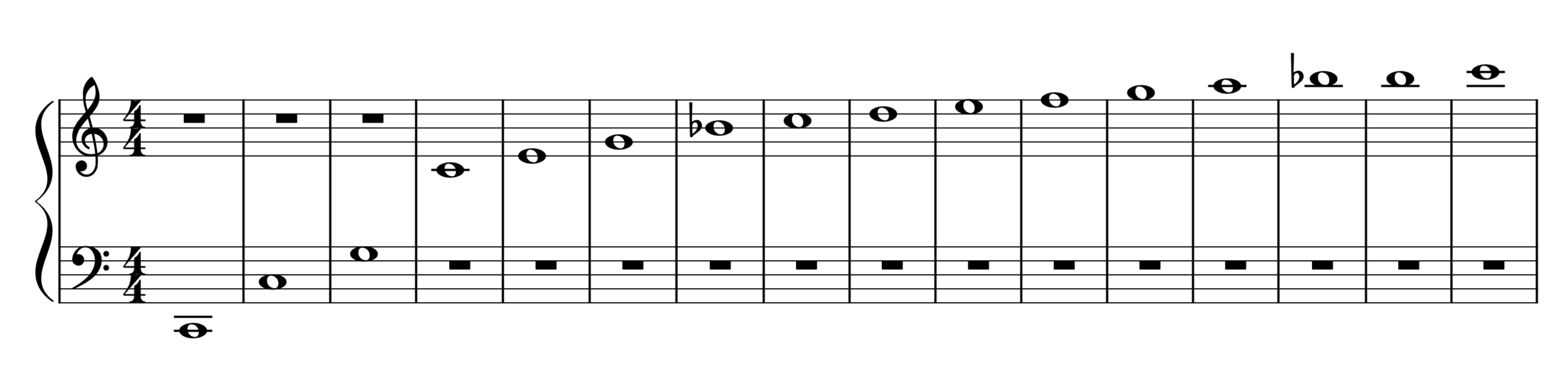 Dieser beginnt mit einer großen Terz (5/4) auf die eine Quarte (4/3) folgt. Beide Intervalle zusammen ergeben eine große Sexte (5/3)