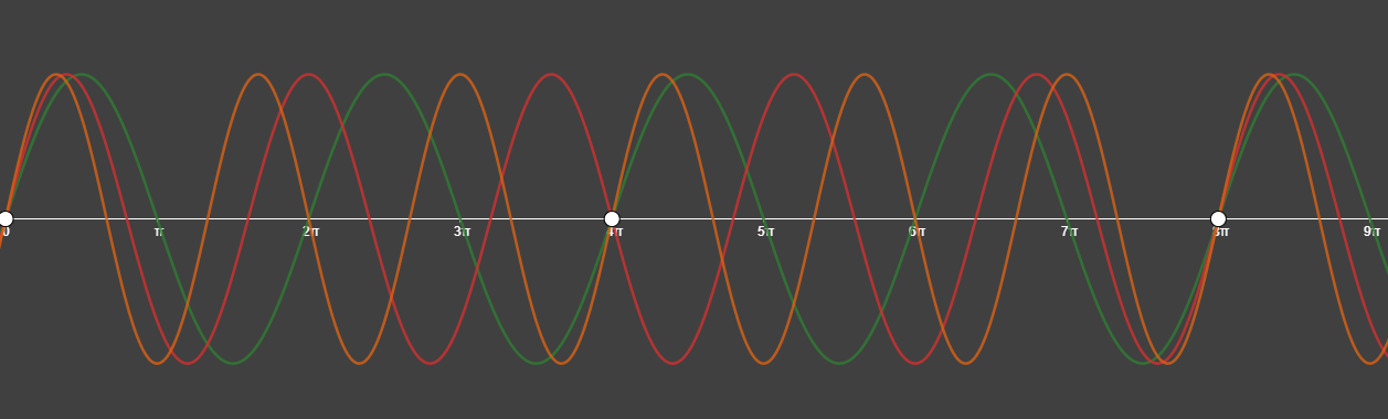 Je kleiner die ganzen Zahlen beim Verhältnis der Frequenzen, also je eher sich die Kurven wieder schneiden, desto konsonanter klingt das Intervall.